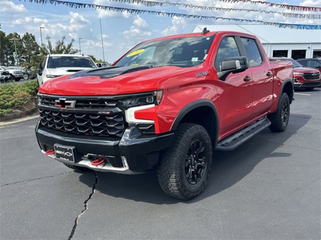 CARFAX One-Owner. Clean CARFAX. Odometer is 6203 miles below market average! 2022 Chevrolet Silverado 1500 ZR2 10-Speed Automatic, 4WD, Jet Black/Graystone Leather, 10-Way Power Driver Seat w/Lumbar, 10-Way Power Passenger Seat Adjuster w/Lumbar, 12.3 Multicolor Reconfigurable Digital Display, 120-Volt Bed Mounted Power Outlet, 120-Volt Instrument Panel Power Outlet, 15 Diagonal Multicolor Head-Up Display, 170 Amp Alternator, 2 USB Data Ports, 2nd Row Heated Outboard Seats, 3.23 Rear Axle Ratio, 4-Wheel Disc Brakes, 7 Speakers, ABS brakes, Adaptive Cruise Control, Air Conditioning, All-Weather Floor Liner (LPO), Alloy wheels, AM/FM radio: SiriusXM with 360L, Apple CarPlay/Android Auto, Auto High-beam Headlights, Auto-dimming door mirrors, Auto-Dimming Inside Rear-View Mirror, Auto-dimming Rear-View mirror, Auto-Locking Rear Differential, Automatic Emergency Braking, Automatic temperature control, Bed View Camera, Bluetooth® For Phone, Brake assist, Chevrolet Connected Access Capable, Chevytec Spray-On Black Bedliner, Color-Keyed Carpeting Floor Covering, Compass, Deep-Tinted Glass, Delay-off headlights, Driver door bin, Driver Memory, Driver vanity mirror, Dual Exhaust, Dual front impact airbags, Dual front side impact airbags, Dual Rear USB Ports (Charge Only), Electric Rear-Window Defogger, Electrical Steering Column Lock, Electronic Cruise Control, Electronic Stability Control, Electronic Transmission Range Selector Shifter, EZ Lift Power Lock & Release Tailgate, Floor Mounted Center Console, Following Distance Indicator, Forward Collision Alert, Front anti-roll bar, Front Bucket Seats, Front Center Armrest, Front dual zone A/C, Front fog lights, Front LED Fog Lamps, Front License Plate Kit, Front Pedestrian Braking, Front Rainsensing Wipers, Front reading lights, Front wheel independent suspension, Fully automatic headlights, Garage door transmitter, HD Surround Vision, Heated door mirrors, Heated Driver & Front Outboard Passenger Seats, Heated front seats, Heated rear seats, Heated Steering Wheel, Heated steering wheel, Heavy-Duty Air Filter, High Gloss Black Mirror Caps, Hill Descent Control, Hitch Guidance, Hitch Guidance w/Hitch View, Illuminated entry, Integrated Trailer Brake Controller, IntelliBeam Automatic High Beam On/Off, Keyless Open & Start, Lane Keep Assist w/Lane Departure Warning, Leather Wrapped Steering Wheel, LED Cargo Area Lighting, Low tire pressure warning, Manual Tilt/Telescoping Steering Column, Memory seat, Not Equipped w/Steering Column Lock, Occupant sensing airbag, Off-Road Assist Steps (LPO), OnStar & Chevrolet Connected Services Capable, Outside Heated Power-Adjustable Mirrors, Outside temperature display, Overhead airbag, Overhead console, Panic alarm, Passenger door bin, Passenger vanity mirror, Perforated Leather Seat Trim, Performance Red Recovery Hooks, Perimeter Lighting, Power door mirrors, Power driver seat, Power Front Passenger Windows w/Express Up/Down, Power Front Windows w/Driver Express Up/Down, Power passenger seat, Power Rear Windows w/Express Down, Power Sliding Rear Window w/Rear Defogger, Power steering, Power Sunroof, Power Tilt & Telescoping Steering Column, Power windows, Preferred Equipment Group 3LT, Premium audio system: Chevrolet Infotainment 3 Premium, Premium Bose 7-Speaker Sound System, Radio data system, Radio: Chevrolet Infotainment 3 Premium System, Rain sensing wipers, Rear Camera Mirror, Rear Cross Traffic Alert-Braking, Rear Park Assist, Rear Pedestrian Detection, Rear reading lights, Rear seat center armrest, Rear step bumper, Rear Wheelhouse Liners, Rear window defroster, Remote keyless entry, Remote Vehicle Starter System, Safety Alert Seat, Security system, SiriusXM w/360L, Speed control, Speed-sensing steering, Split folding rear seat, Standard Tailgate, Steering Wheel Audio Controls, Steering wheel mounted audio controls, Tachometer, Technology Package, Telescoping steering wheel, Theft Deterrent System