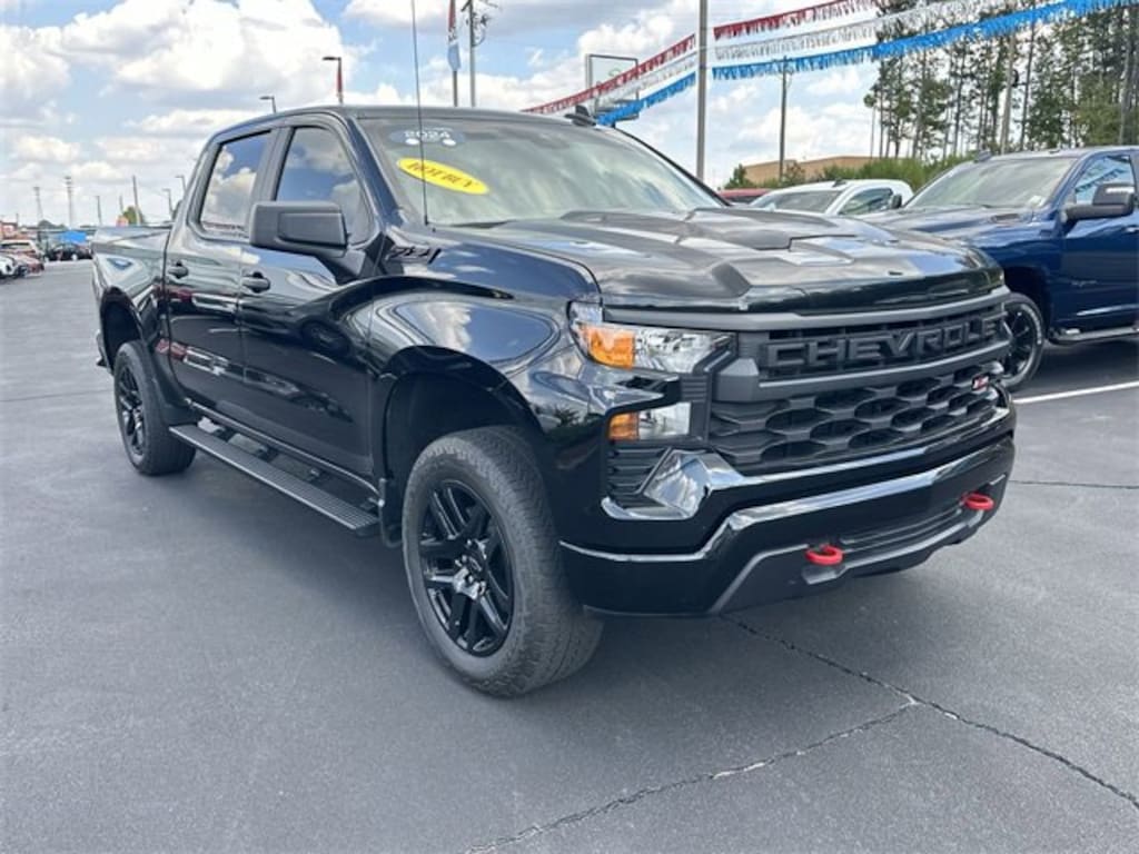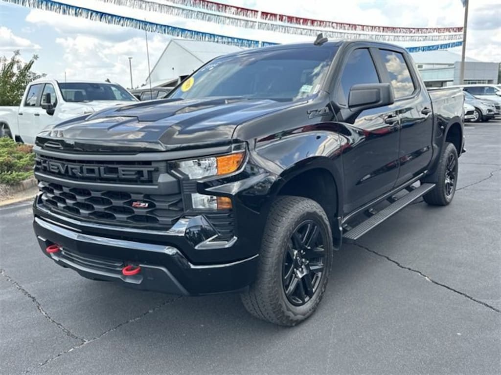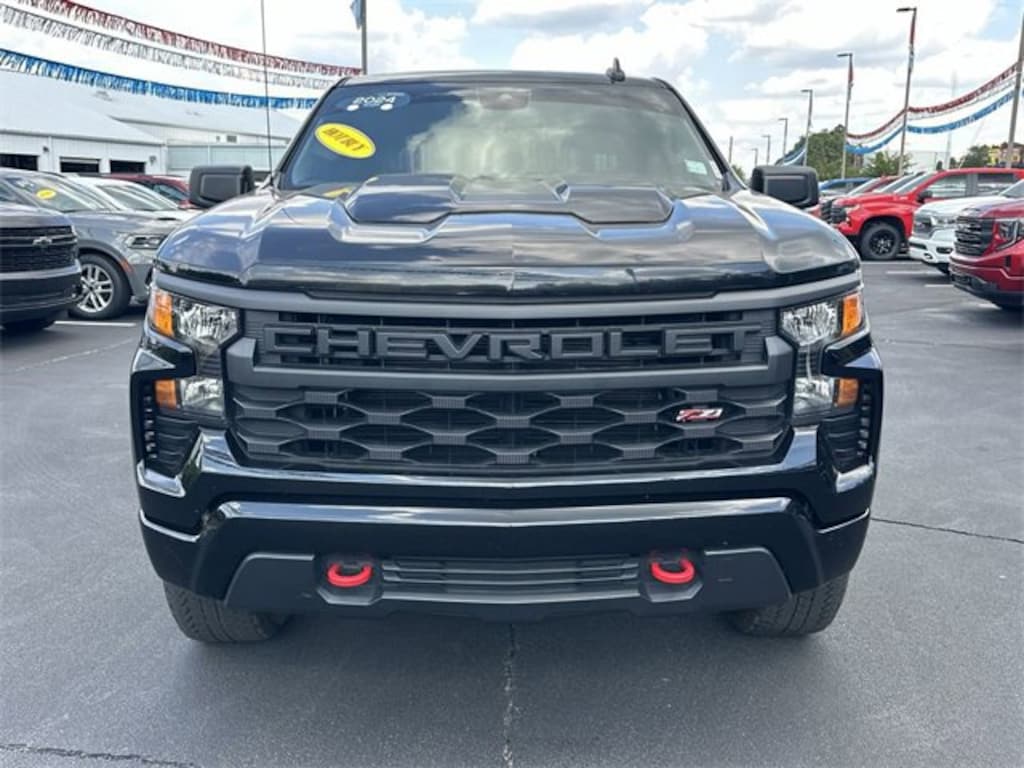 CARFAX One-Owner. 2024 Chevrolet Silverado 1500 Custom Trail Boss 10-Speed Automatic, 4WD, Black Cloth, 10-Way Power Driver Seat w/Lumbar, 120-Volt Bed Mounted Power Outlet, 120-Volt Interior Power Outlet, 170 Amp Alternator, 220 Amp Alternator, 3.5 Monochromatic Display Driver Info Center, 4-Wheel Disc Brakes, 40/20/40 Front Split-Bench Seat, 6 Speakers, 6-Speaker Audio System, ABS brakes, Air Conditioning, Alloy wheels, AM/FM radio: SiriusXM, Auto High-beam Headlights, Auto-Locking Rear Differential, Automatic Emergency Braking, Auxiliary External Transmission Oil Cooler, Black Name Plates (LPO), Black Tailgate CHEVROLET Lettering (LPO), Bluetooth® For Phone, Brake assist, Chevrolet Connected Access Capable, Cloth Seat Trim, Color-Keyed Carpeting Floor Covering, Compass, Custom Convenience Package, Dark Essentials Package (LPO), Deep-Tinted Glass, Delay-off headlights, Driver door bin, Driver vanity mirror, Dual Exhaust w/Polished Outlets, Dual front impact airbags, Dual front side impact airbags, Dual Rear USB Ports (Charge Only), Electric Rear-Window Defogger, Electrical Steering Column Lock, Electronic Cruise Control, Electronic Stability Control, External Engine Oil Cooler, EZ Lift Power Lock & Release Tailgate, Following Distance Indicator, Forward Collision Alert, Front anti-roll bar, Front Center Armrest w/Storage, Front Pedestrian Braking, Front reading lights, Front Rubberized Vinyl Floor Mats, Front wheel independent suspension, Fully automatic headlights, HD Rear Vision Camera, Heated door mirrors, Heavy-Duty Air Filter, Hill Descent Control, Hitch Guidance, Illuminated entry, Integrated Trailer Brake Controller, IntelliBeam Automatic High Beam On/Off, Lane Keep Assist w/Lane Departure Warning, LED Cargo Area Lighting, Low tire pressure warning, Manual Tilt Wheel Steering Column, Occupant sensing airbag, OnStar & Chevrolet Connected Services Capable, Outside temperature display, Overhead airbag, Overhead console, Panic alarm, Passenger door bin, Passenger vanity mirror, Performance Red Recovery Hooks, Power door mirrors, Power driver seat, Power Front Windows w/Driver Express Up/Down, Power Front Windows w/Passenger Express Down, Power Rear Windows w/Express Down, Power steering, Power windows, Preferred Equipment Group 2CX, Premium audio system: Chevrolet Infotainment 3, Radio data system, Radio: Chevrolet Infotainment 3 System, Rear 60/40 Folding Bench Seat (Folds Up), Rear reading lights, Rear Rubberized-Vinyl Floor Mats, Rear step bumper, Rear Wheelhouse Liners, Rear window defroster, Remote Keyless Entry, Remote keyless entry, Remote Vehicle Starter System, Security system, Single Outlet Exhaust, SiriusXM Radio, Speed control, Speed-sensing steering, Split folding rear seat, Standard Tailgate, Suspension Package, Tachometer, Theft Deterrent System (Unauthorized Entry), Tilt steering wheel, Traction control, Trailering Package, Trip computer, Variably intermittent wipers, Voltmeter, Wheels: 18 x 8.5 Black Painted Aluminum, Wheels: 20 x 9 High Gloss Black Painted Alum, Wi-Fi Hot Spot Capable, 10-Speed Automatic, 4WD, Black Cloth.