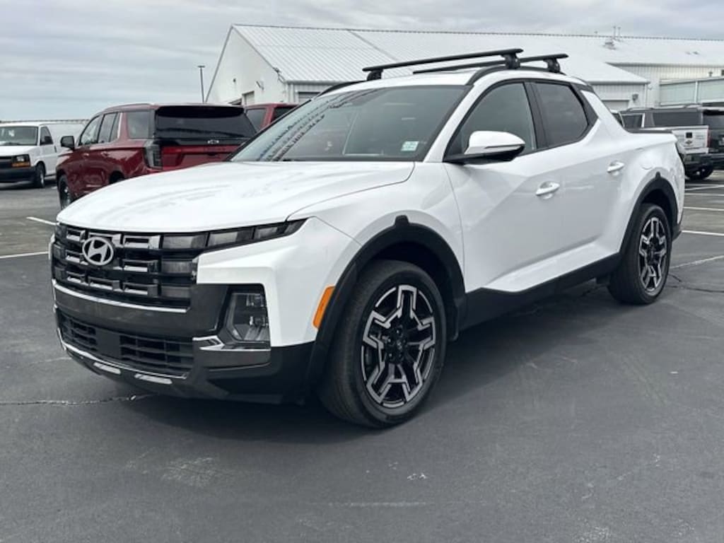 CARFAX One-Owner. Clean CARFAX. 2025 Hyundai Santa Cruz Limited 3.316 Axle Ratio, 4-Wheel Disc Brakes, 8 Speakers, ABS brakes, Air Conditioning, Alloy wheels, AM/FM radio: SiriusXM, Apple CarPlay & Android Auto, Audio memory, Auto High-beam Headlights, Auto-dimming Rear-View mirror, Auto-leveling suspension, Automatic temperature control, Bed Fence, Brake assist, Bumpers: body-color, Carpeted Floor Mats, Compass, Delay-off headlights, Driver door bin, Driver vanity mirror, Dual front impact airbags, Dual front side impact airbags, Electronic Stability Control, Emergency communication system: Bluelink+, Exterior Parking Camera Rear, First Aid Kit, Four wheel independent suspension, Front anti-roll bar, Front Bucket Seats, Front Center Armrest, Front dual zone A/C, Front reading lights, Fully automatic headlights, Garage door transmitter: HomeLink, Heated & Ventilated Front Bucket Seats, Heated door mirrors, Heated front seats, Heated steering wheel, Illuminated entry, Leather Shift Knob, Leather steering wheel, Leather-Trimmed Seat Trim, Low tire pressure warning, Memory seat, Navigation System, Occupant sensing airbag, Option Group 01, Outside temperature display, Overhead airbag, Overhead console, Panic alarm, Passenger door bin, Passenger vanity mirror, Power door mirrors, Power driver seat, Power moonroof, Power passenger seat, Power steering, Power windows, Radio data system, Radio: AM/FM/HD w/Bose Premium Audio System, Rain sensing wipers, Rear anti-roll bar, Rear reading lights, Rear seat center armrest, Rear side impact airbag, Rear step bumper, Rear window defroster, Remote keyless entry, Roadside Assistance Kit, Security system, Speed control, Speed-sensing steering, Split folding rear seat, Spoiler, Steering wheel mounted audio controls, Tachometer, Telescoping steering wheel, Tilt steering wheel, Traction control, Trip computer, Turn signal indicator mirrors, Variably intermittent wipers, Ventilated front seats, Wheels: 20 x 7.5J Alloy. 19/27 City/Highway MPG